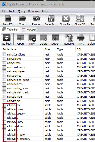 the database alias name you specified prefix at the beginning of the table name. See the screen shot below. These additional tables can also be queried in the query
